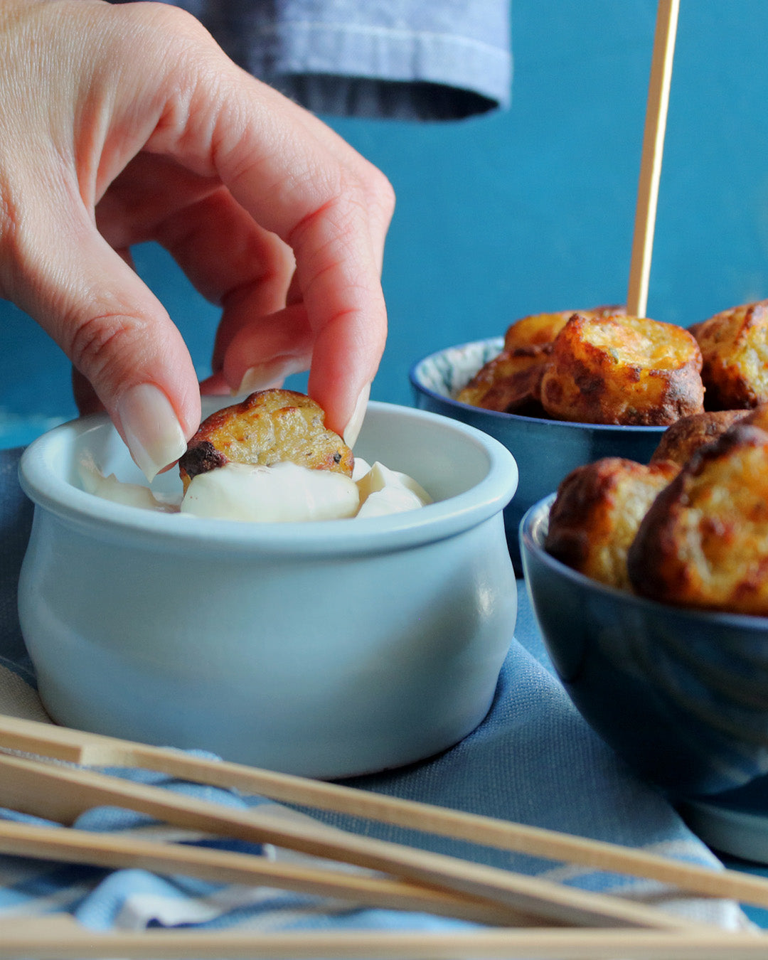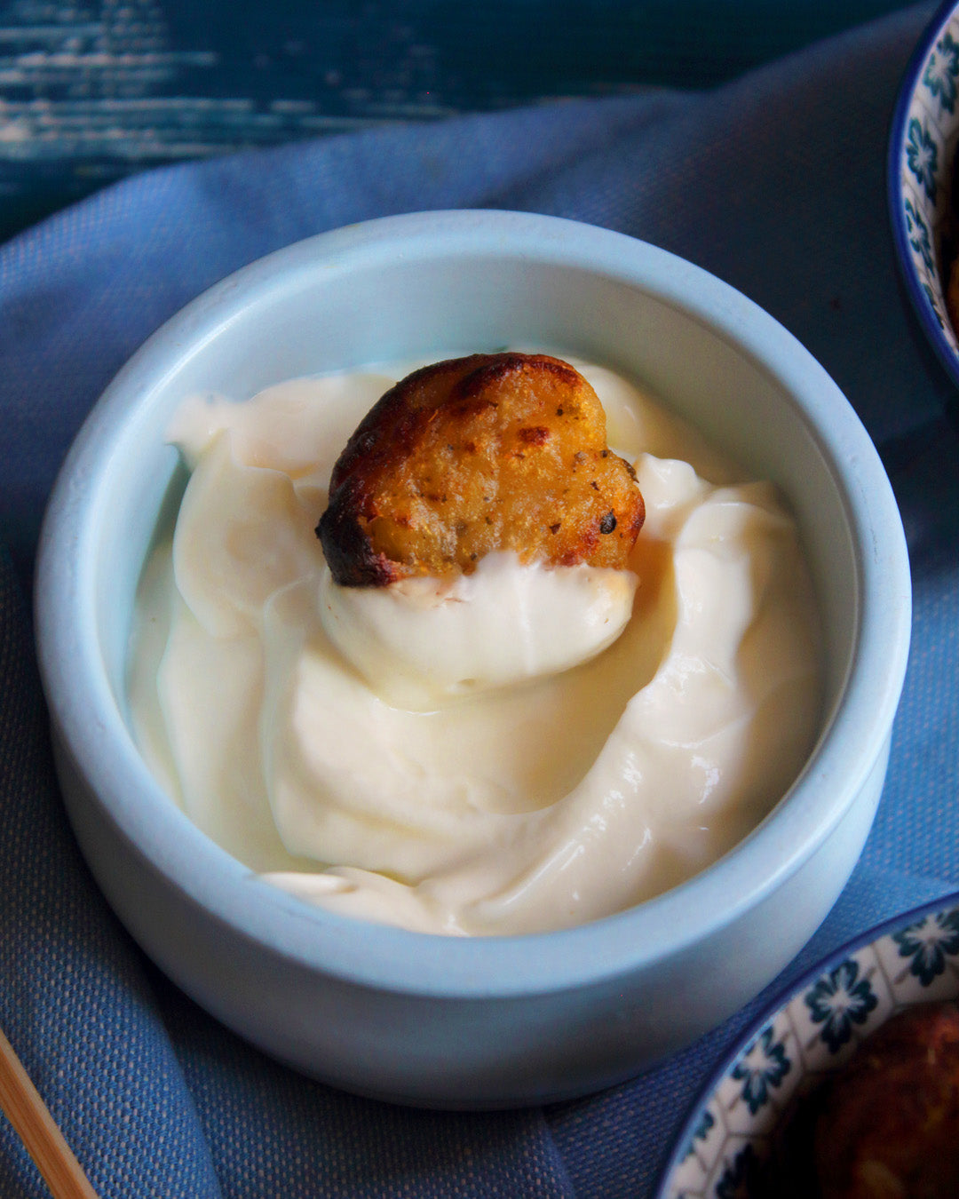- Serve the potato croquettes hot with the truffle cream cheese dip.