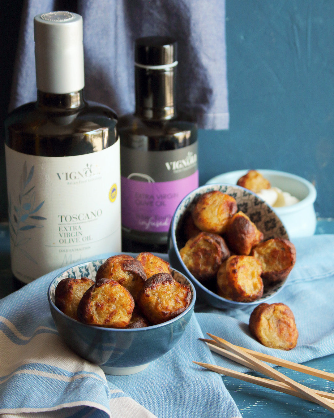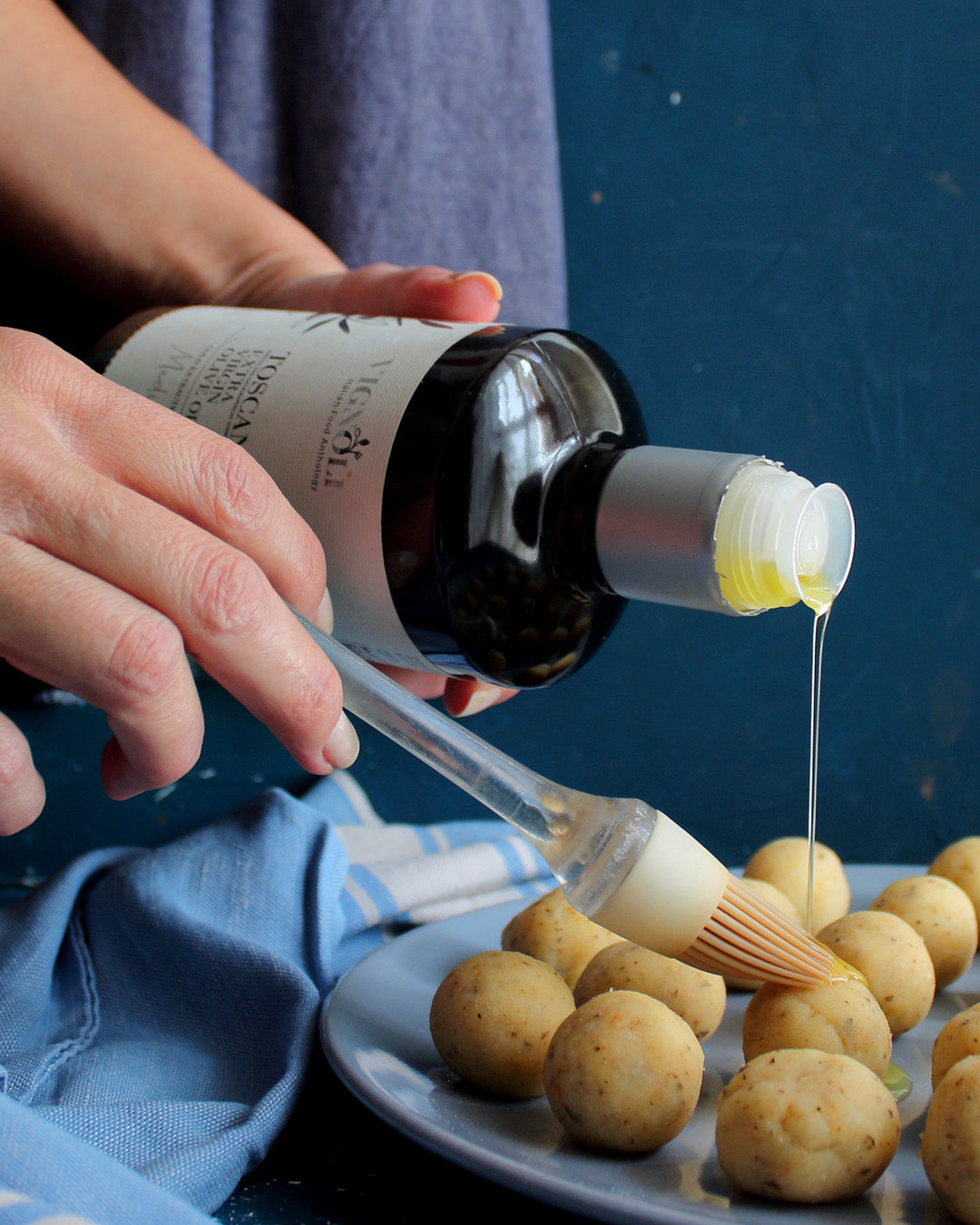 - Brush the potato balls evenly with Vignoli Extra Virgin Olive Oil IGP Toscana.