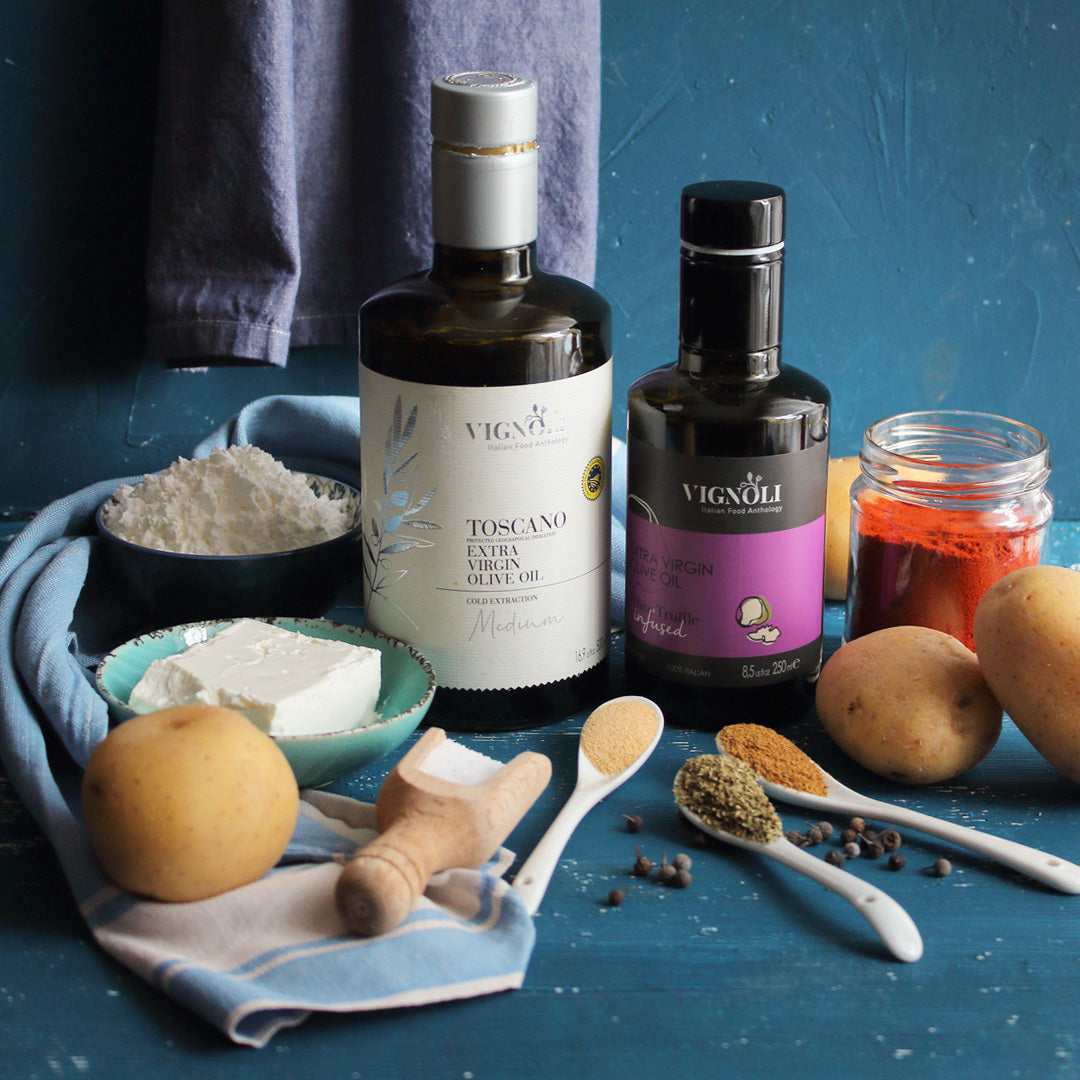 When food is small, tasty, irresistible, and tempting—like cherries, for example—in Italy we say “Uno tira l’altro” (literally, “one pulls the other”). That’s exactly the case with these absolutely gorgeous potato croquettes, which turn out wonderfully crispy thanks to our Extra Virgin Olive Oil IGP Toscana. The side sauce is ultra-simple: a velvety cream cheese blended with our White Truffle Infused Extra Virgin Olive Oil, for a pure and refined taste experience.