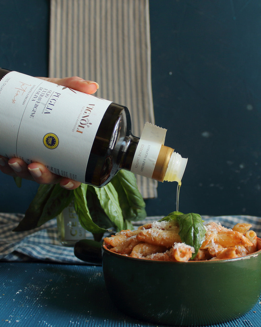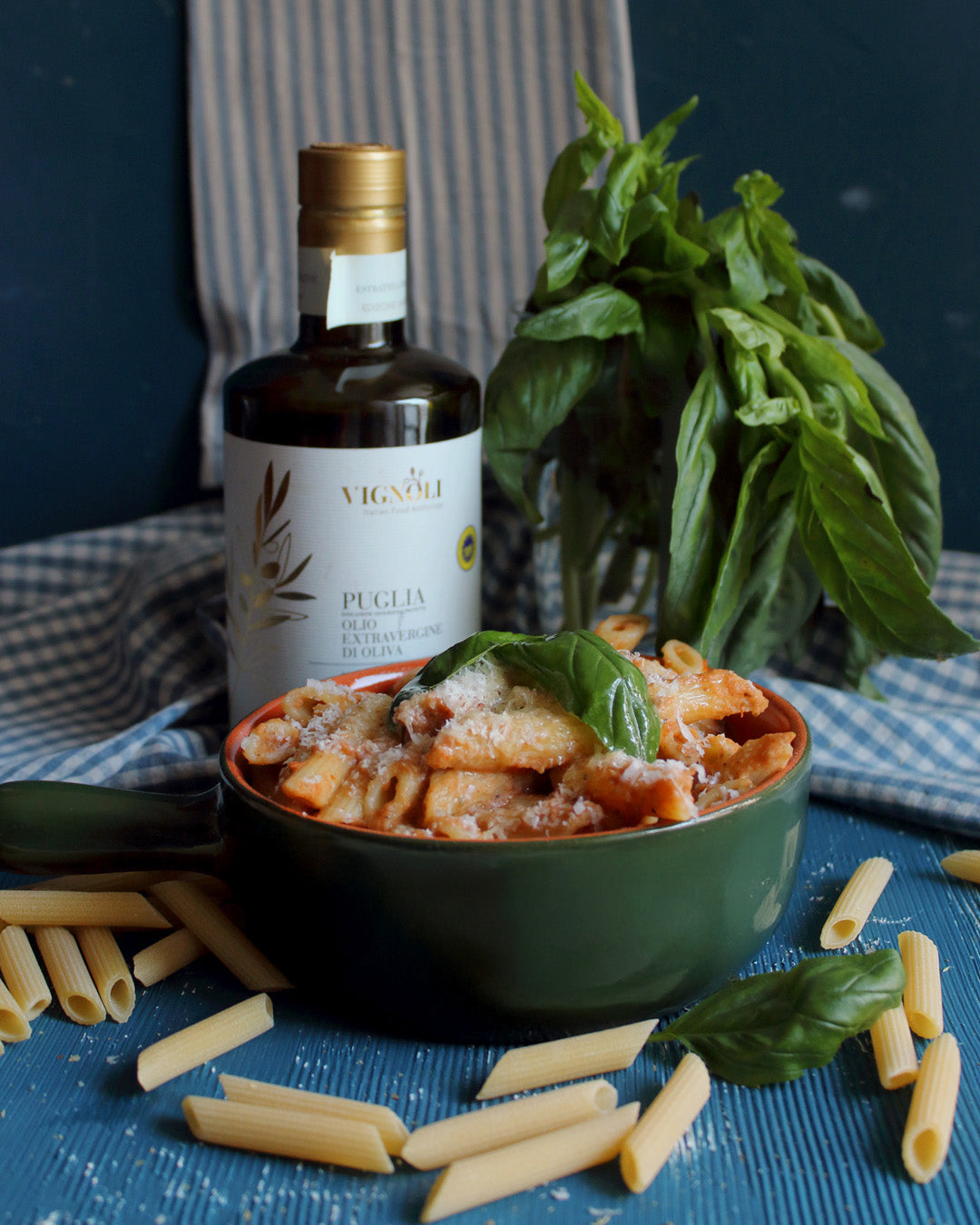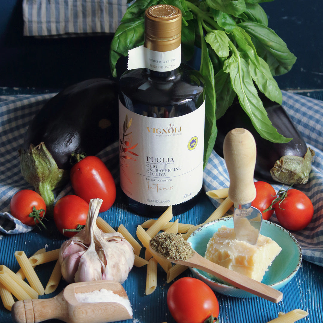 To celebrate, we’ve put together a simple yet delicious pasta dish with a super easy sauce made from roasted eggplant and roasted tomatoes. The result? A crave-worthy, vegetarian pasta that’s perfect for lunch or dinner—elevated by the rich, full-bodied flavor of our IGP Puglia Extra Virgin Olive Oil, which adds depth and a touch of Mediterranean warmth to every bite.