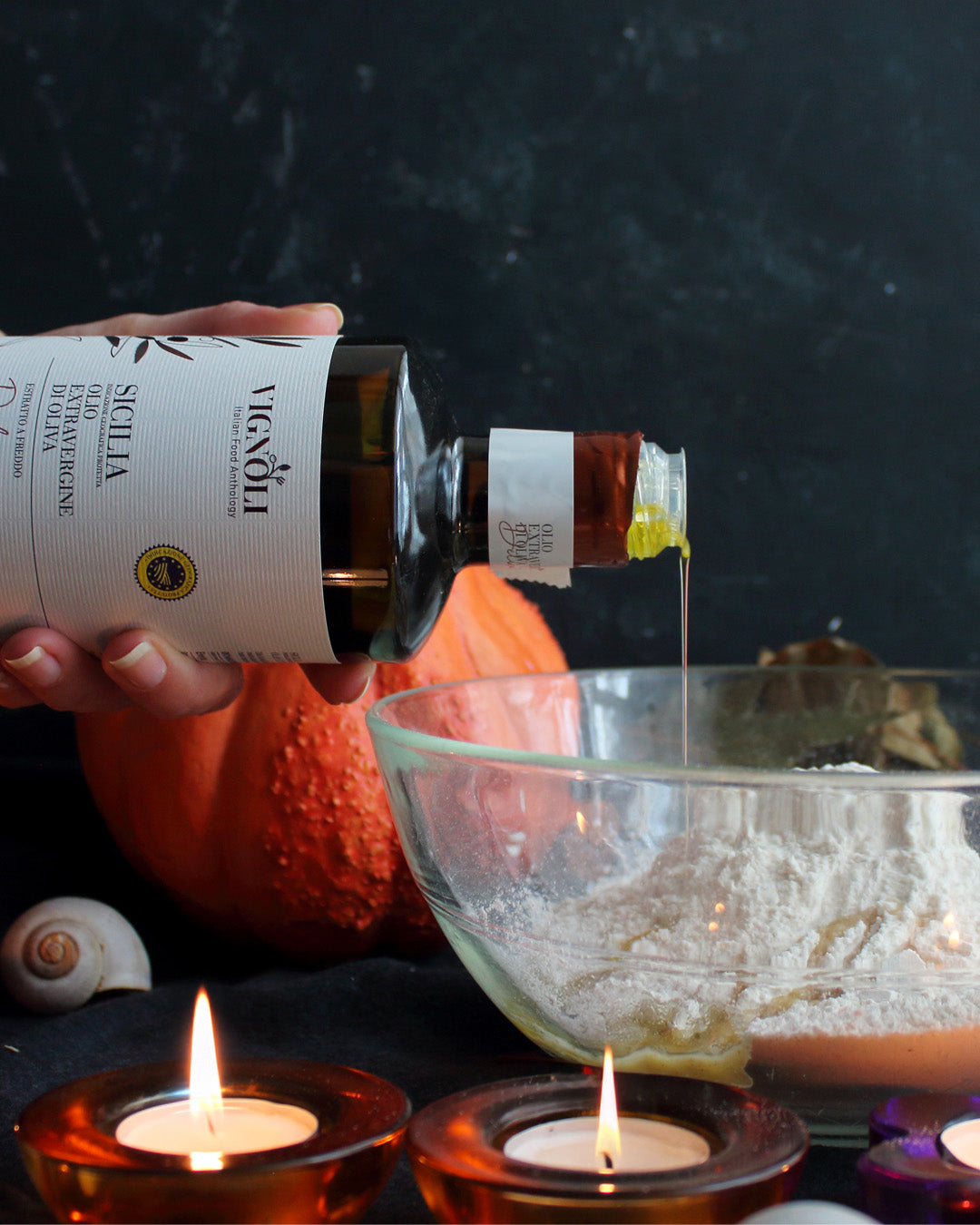 The spookiest and tastiest (and vegan) party snack for Halloween 2025? Here it is! Made with ultra-simple ingredients — including our delicately flavored and beautifully scented IGP Sicilia Extra Virgin Olive Oil — these cookies have an incredible texture and taste. Ready for a fancy indoor Halloween party?